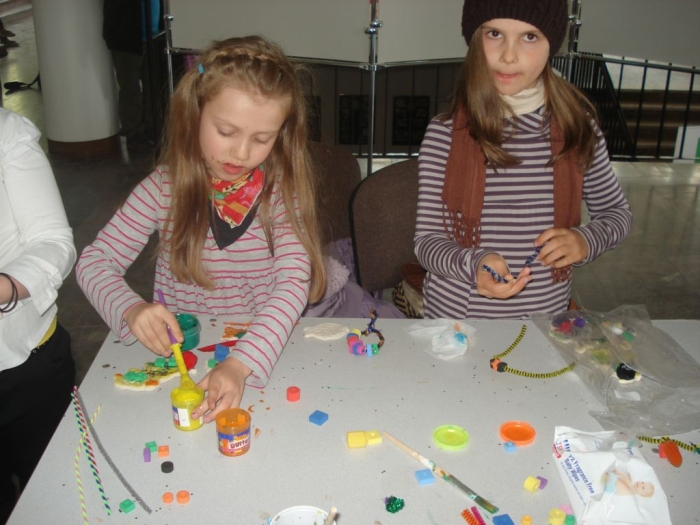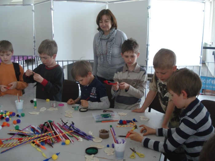 - plastycznych, gdzie malowały plakat z łosiem w tle, robiły cudaki, pióropusze, bransoletki oraz malowały wyroby z masy solnej;