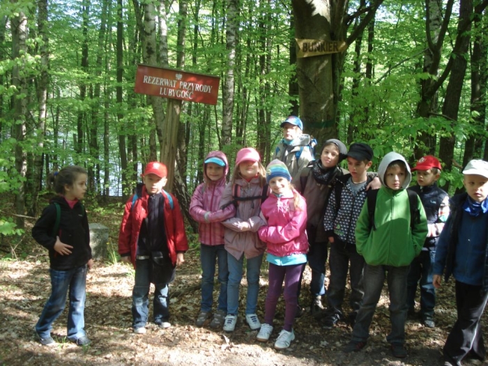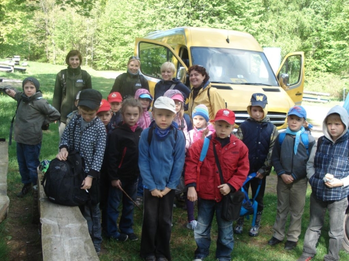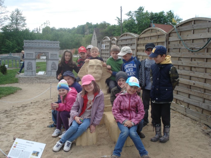 18 maja pojechaliśmy na lekcję przyrody wprost do lasu. Przebyliśmy długą ścieżkę przyrodniczą w Mirachowie w rezerwacie nad jeziorem Lubygość. Poznaliśmy chronione rośliny, zwierzęta, wchodziliśmy do jaskini i bunkra. Nie zabrakło ogniska z pieczonymi kiełbaskami i pytań, na które znaliśmy już odpowiedzi. Podziękowaliśmy paniom z Kaszubskiego Parku Krajobrazowego laurką i pełni energii udaliśmy się do Parku Miniatur. Byliśmy w wielu zakątkach świata:). Karmiliśmy też zwierzątka, pokazywaliśmy odwagę w Zamku Strachu, bawiliśmy się na placu zabaw i pękaliśmy ze śmiechu w sali luster. Na zakończenie zaśpiewaliśmy p. przewodnikowi alfabet kaszubski. Było tyle wrażeń, że niektórzy w drodze powrotnej zasnęli:)