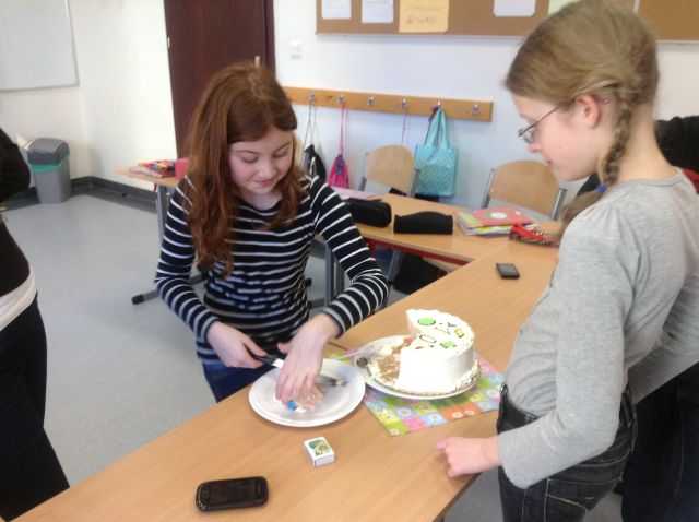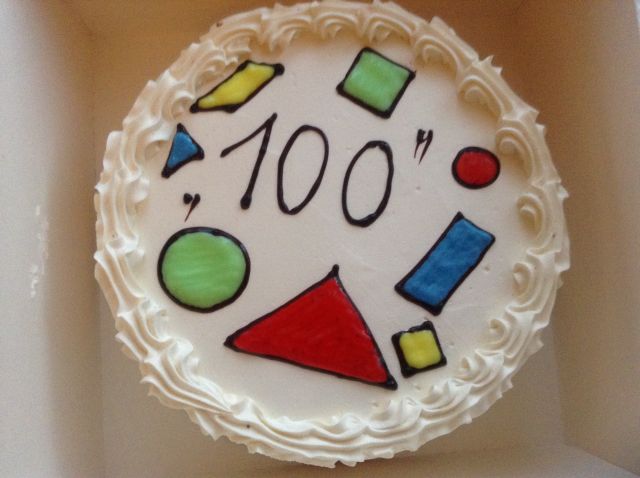 Dnia 28 lutego uczniowie klasy czwartej wraz z paniami: Danutą Kwiatkowską i Agnieszką Majewską uczcili swoją 100-tną lekcję matematyki tortem śmietankowo-truskawkowym. Z niecierpliwością wszyscy czekali na tę szczególną lekcję i odliczali do niej dni.