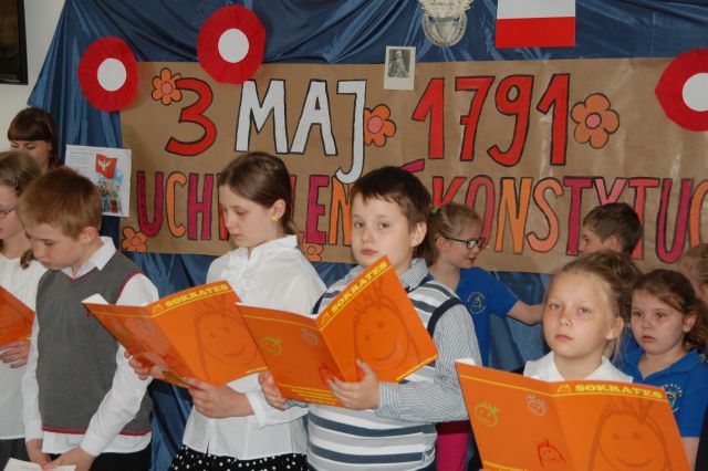 Dnia 8 maja 2013 społeczność szkoły SOKRATES uczestniczyła w apelu z okazji 222 rocznicy uchwalenia Konstytucji 3 maja. Prezentację wykonali uczniowie klasy IV pod opieką Pani A. Krzewickiej i M. Trawki.