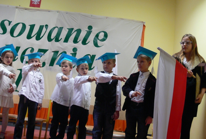 Uczniowie zaprezentowali się w ciekawym programie, udowodnili, iż potrafią nauczyć się długich i pouczających ról, pięknie śpiewać i współpracować ze sobą. Po tej części nastąpiło uroczyste ślubowanie, gdzie przyrzekali być: