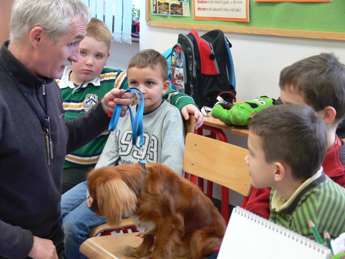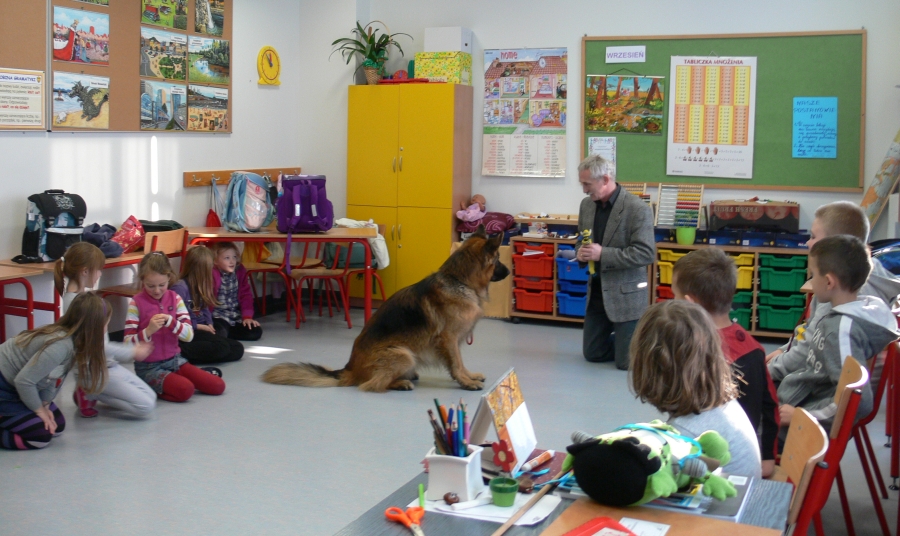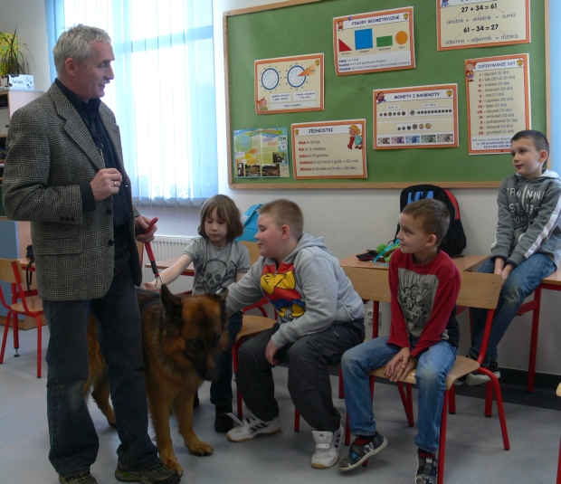 Na koniec dzieci pożegnały się z SANTO i z wielkim zaciekawieniem czekali na ponowną wizytę w szkole pana Leszka z następnym przyjacielem człowieka - psem.
