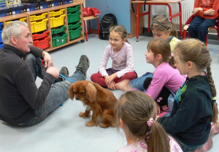23 listopada uczniów odwiedził w szkole niezwykły gość - pies SANTO. Uczniowie przyjęli pieska z entuzjazmem. W końcu nie co dzień przychodzi do szkoły pies.