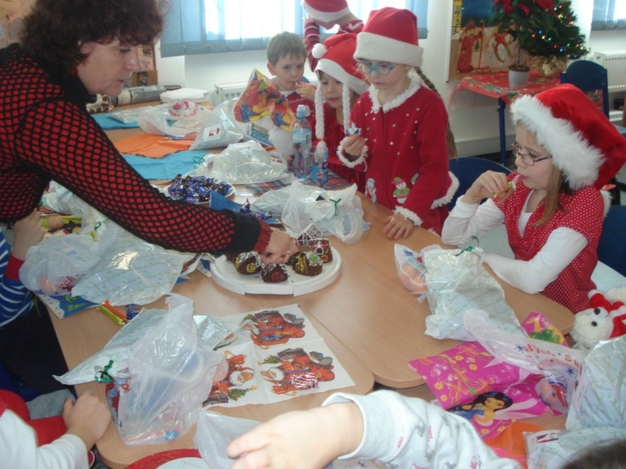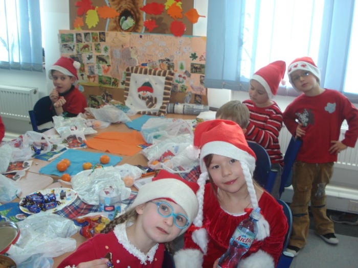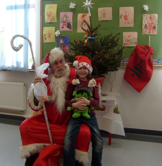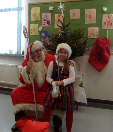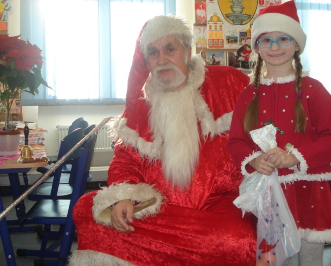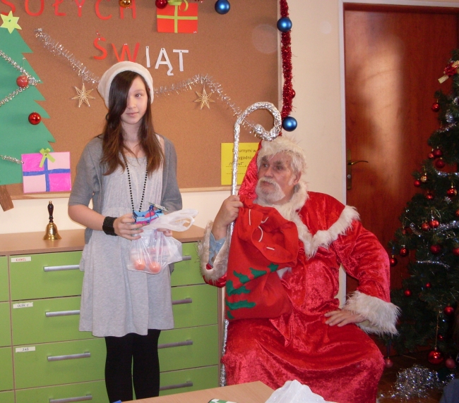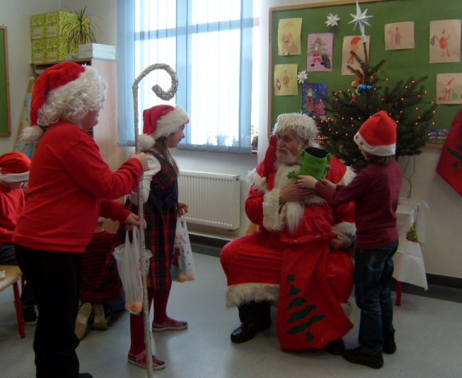 Mikołaj wysłuchał piosenek w wykonaniu uczniów. Każdy uczeń obdarowany został prezentem. Spotkanie ze św. Mikołajem było bardzo miłe i przebiegło w radosnej atmosferze. Był to dla wszystkich bardzo wesoły dzień.