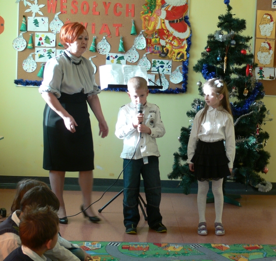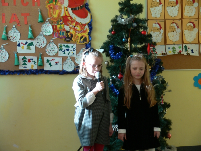 Dzisiaj, 22 grudnia br. o godz. 10.00 spotkali się wszyscy uczniowie i przedszkolacy oraz nauczyciele na wspólnym kolędowaniu. Każda klasa zaprezentowała wybraną kolędę lub pastorałkę.