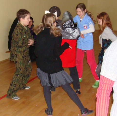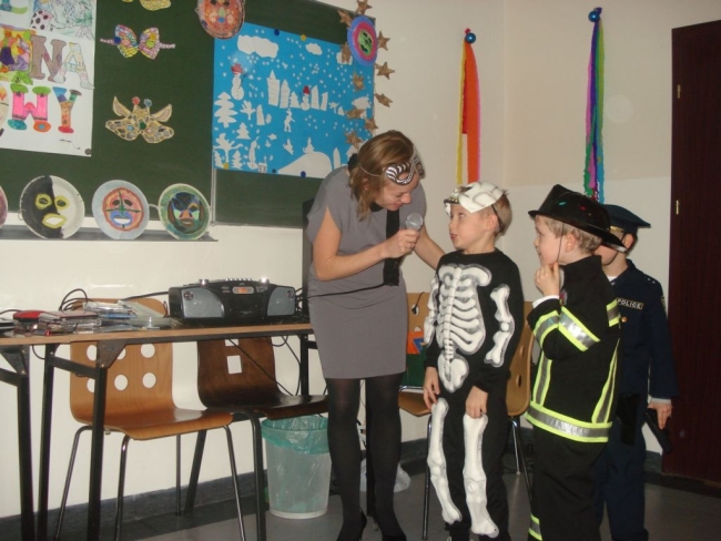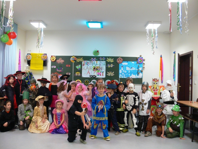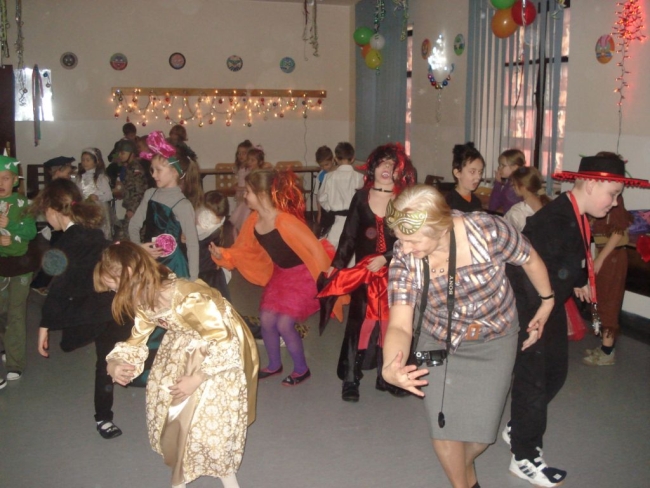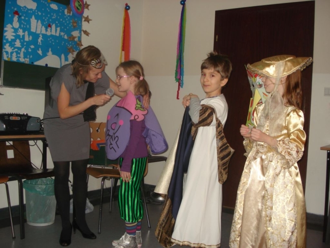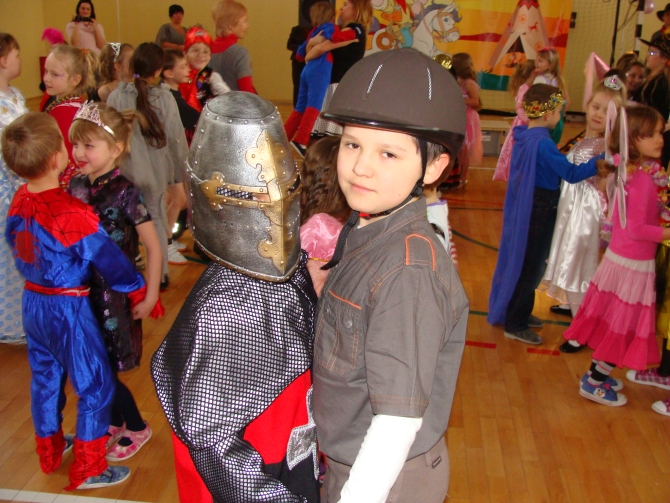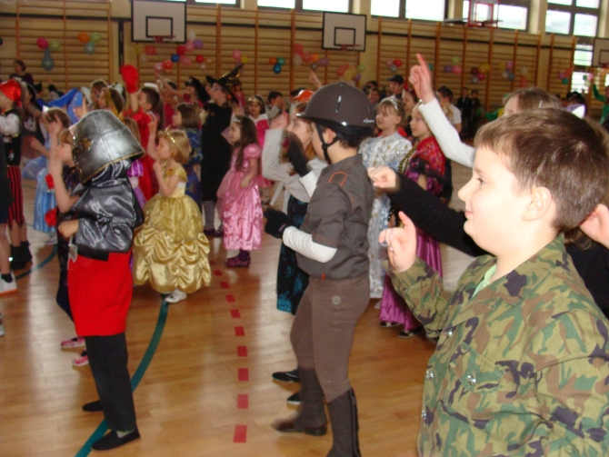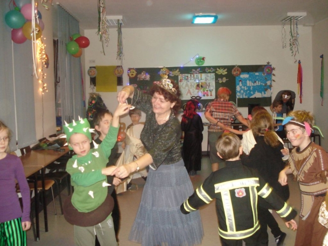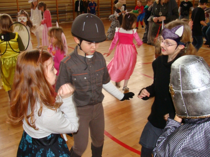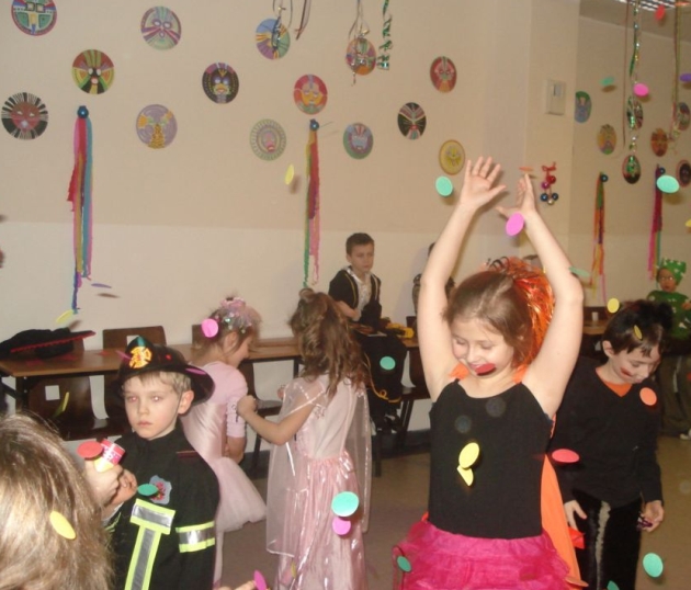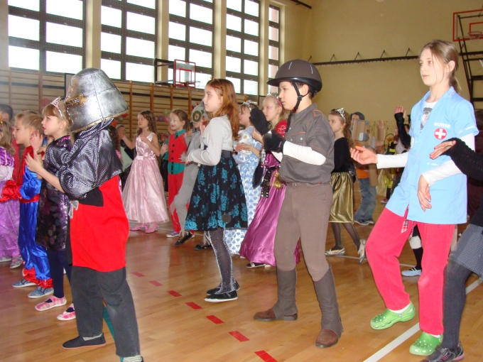 24 stycznia 2012 r. sala gimnastyczna zmieniła swoje oblicze i czekała na uczestników zabawy karnawałowej. Uczniowie klas: I i II nie zawiedli - przybyli w przeróżnych ciekawych strojach, bawili się przy muzyce oraz brali udział w wesołych konkursach. Wszyscy wykazali się doskonałym poczuciem rytmu i humoru. Marysia z kl. II i Milan z kl. I zostali wybrani na Królową i Króla Balu. W klasach czekał na dzieci słodki poczęstunek.