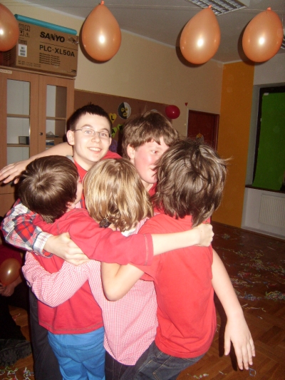 Byliśmy gośćmi uczniów z klas III. Wszyscy nas bardzo serdecznie tam witali, a dyrektor szkoły wraz z uczniami z klasy starszej powitali nas oklaskami. Tańczyliśmy na dużej sali gimnastycznej z uczniami nauczania początkowego tamtej szkoły. Zabawę prowadzili instruktorzy tańca ze Szkoły Tańca "GABI". Zabawa nam się podobała, a szkoła zrobiła na nas ogromne wrażenie. Wszystko tam było duże: szatnie, zaplecze sportowe, stołówka szkolna, hole, starsi uczniowie, dużo uczniów i nauczycieli. Można było się tam zgubić, dlatego tym razem, my pilnowaliśmy naszych pań .