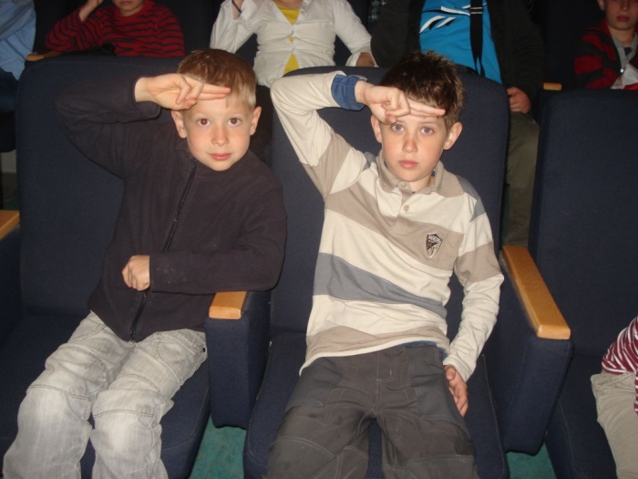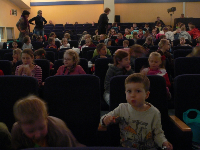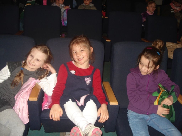 07 maja uczniowie klas 0-III na zaproszenie Stowarzyszenia Filmowców Polskich oraz Pomorskiej Fundacji Filmowej, gościli w kinoteatrze GROM w Gdyni Oksywie, na Przeglądzie Filmów Animowanych dla Dzieci - GDYNIA DZIECIOM.