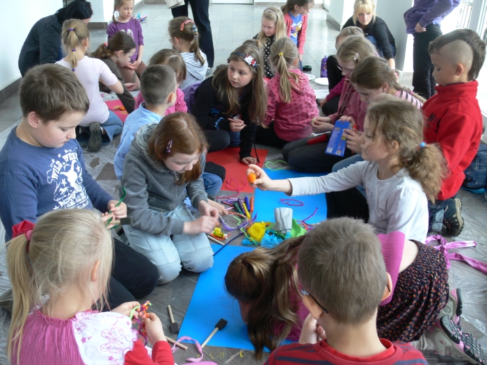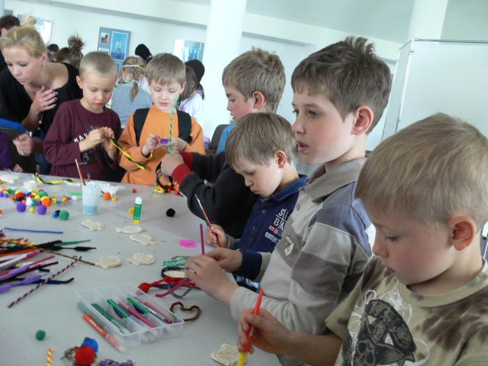 - plastycznych, gdzie malowały plakat z łosiem w tle, robiły cudaki, pióropusze, bransoletki oraz malowały wyroby z masy solnej;