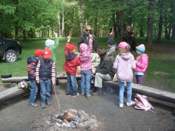 18 maja pojechaliśmy na lekcję przyrody wprost do lasu. Przebyliśmy długą ścieżkę przyrodniczą w Mirachowie w rezerwacie nad jeziorem Lubygość. Poznaliśmy chronione rośliny, zwierzęta, wchodziliśmy do jaskini i bunkra. Nie zabrakło ogniska z pieczonymi kiełbaskami i pytań, na które znaliśmy już odpowiedzi. Podziękowaliśmy paniom z Kaszubskiego Parku Krajobrazowego laurką i pełni energii udaliśmy się do Parku Miniatur. Byliśmy w wielu zakątkach świata:). Karmiliśmy też zwierzątka, pokazywaliśmy odwagę w Zamku Strachu, bawiliśmy się na placu zabaw i pękaliśmy ze śmiechu w sali luster. Na zakończenie zaśpiewaliśmy p. przewodnikowi alfabet kaszubski. Było tyle wrażeń, że niektórzy w drodze powrotnej zasnęli:)