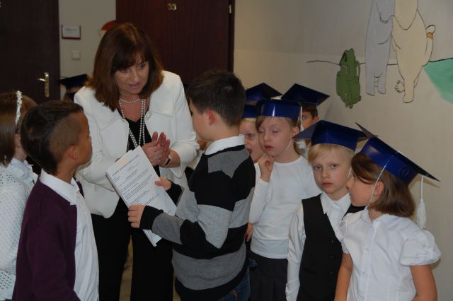 Zanim to jednak nastapiło, pierwszoklasiści musieli przed zaproszonymi gośćmi, popisać się zdobytymi wiadomościami o szkole, zachowaniu i ojczyźnie.