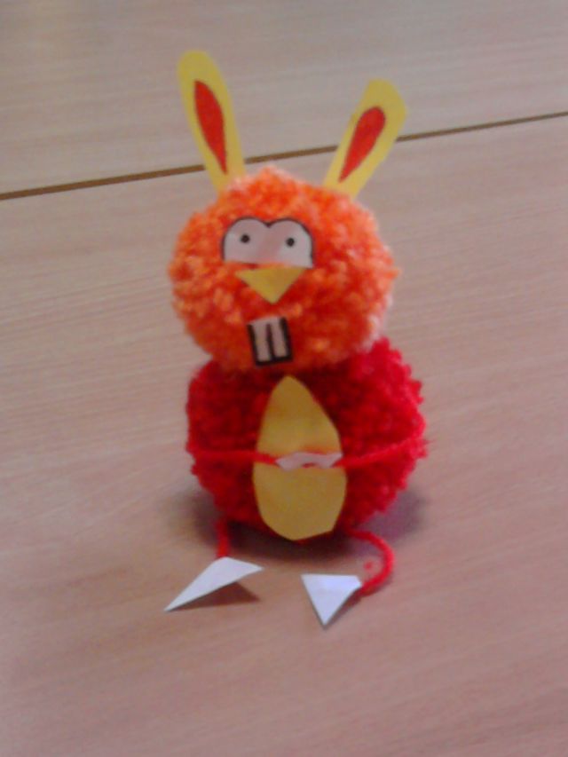 Z okazji zbliżających się świąt  uczniowie klas II, III i IV, w ramach zajęć w świetlicy szkolnej, wykonali sztuczne imitacje zwierząt z kolorowych pomponów oraz rolek papierowych o tematyce wielkanocnej.