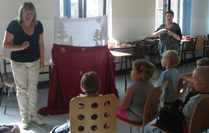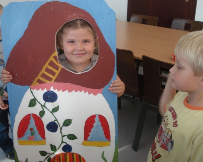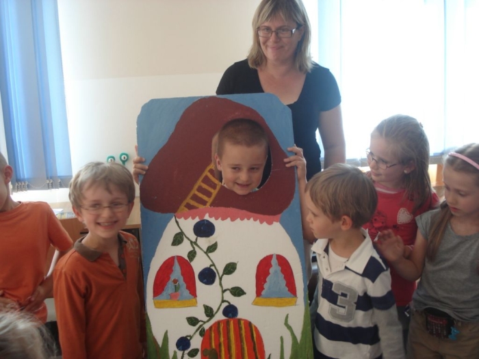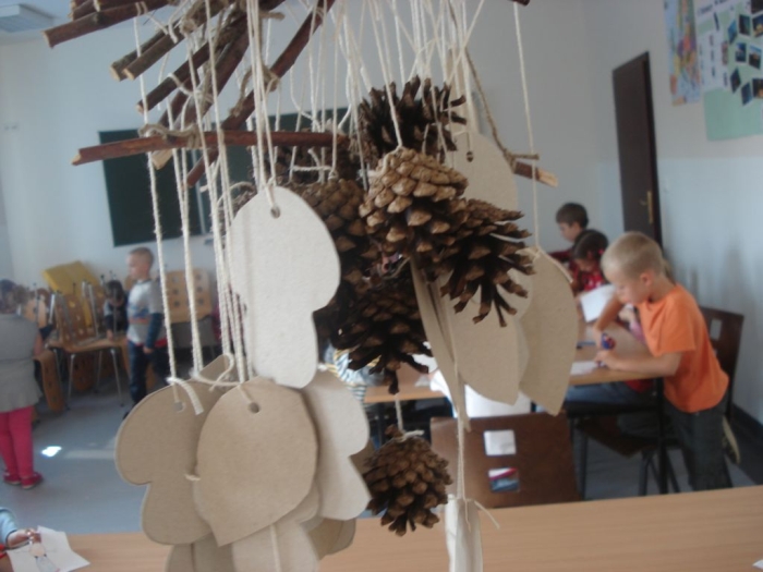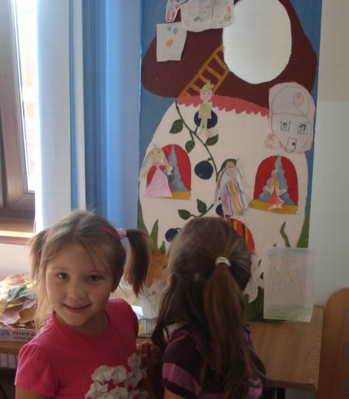 Dzieci oglądały z zaciekawieniem teatrzyk cieni, wspólnie stworzyły z liści pracę plastyczną pt. Jesienna gąsienica, uczyły się pląsów, rysowały i wycinały krasnoludki oraz same wchodziły w role skrzatów. Na pamiątkę zabrały ze sobą upominek wykonany z darów jesieni.