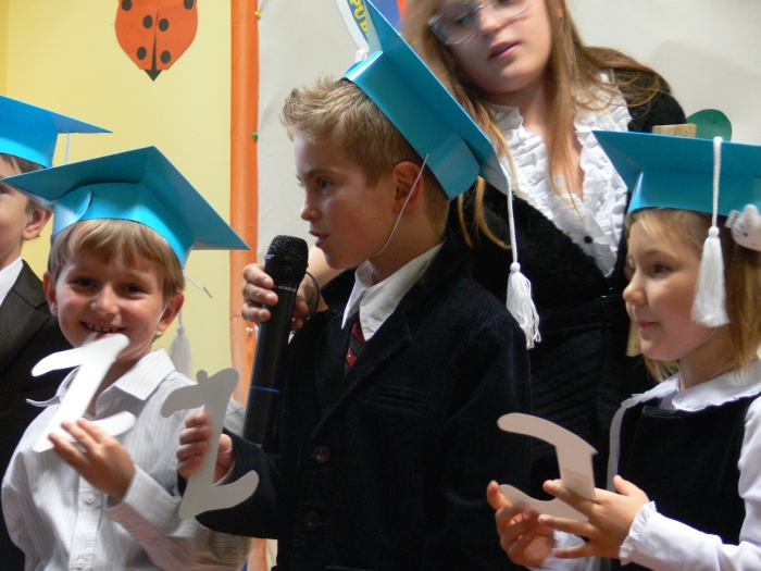 Uczniowie zaprezentowali się w ciekawym programie, udowodnili, iż potrafią nauczyć się długich i pouczających ról, pięknie śpiewać i współpracować ze sobą. Po tej części nastąpiło uroczyste ślubowanie, gdzie przyrzekali być: