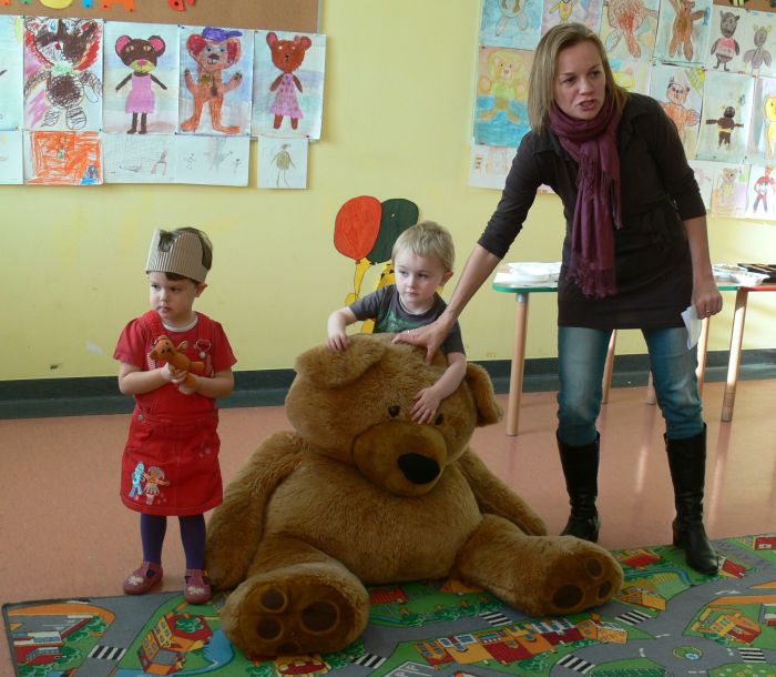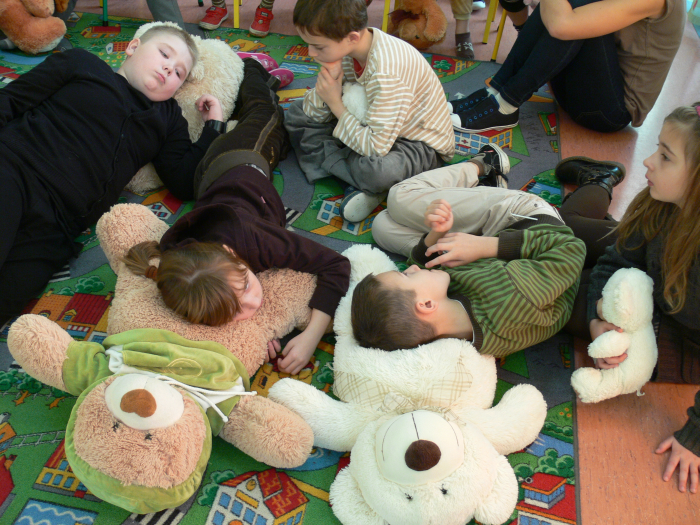 Uczniowie słuchali bajki o najbardziej znanym misiu - Kubusiu Puchatku. Wraz z p. Izą, nauczycielem muzyki, zaśpiewali "misiową" piosenkę.Dużym zaintetesowaniem cieszyło sie miejsce, gdzie można było spróbować miodowych przysmaków: miodu, ciastek i chrupek miodowych.