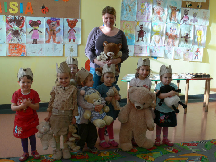 W Światowym Dniu Pluszowego Misia dzieci przyniosły do szkoóły masktki, a niektórzy przebrali sie za misie. Spośród ogromnej ilości przyniesionych pluszaków udało sie znaleźć najmniejszego, który należał do Irenki z grupy 3-latków. Właścicielem największego misia okazał sie Nikodem z grupy 4-latków. .
