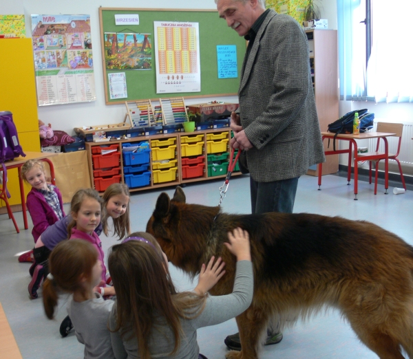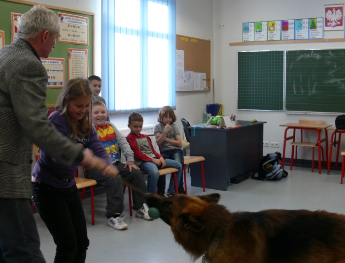 Na koniec dzieci pożegnały się z SANTO i z wielkim zaciekawieniem czekali na ponowną wizytę w szkole pana Leszka z następnym przyjacielem człowieka - psem.