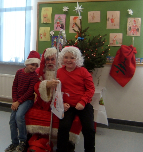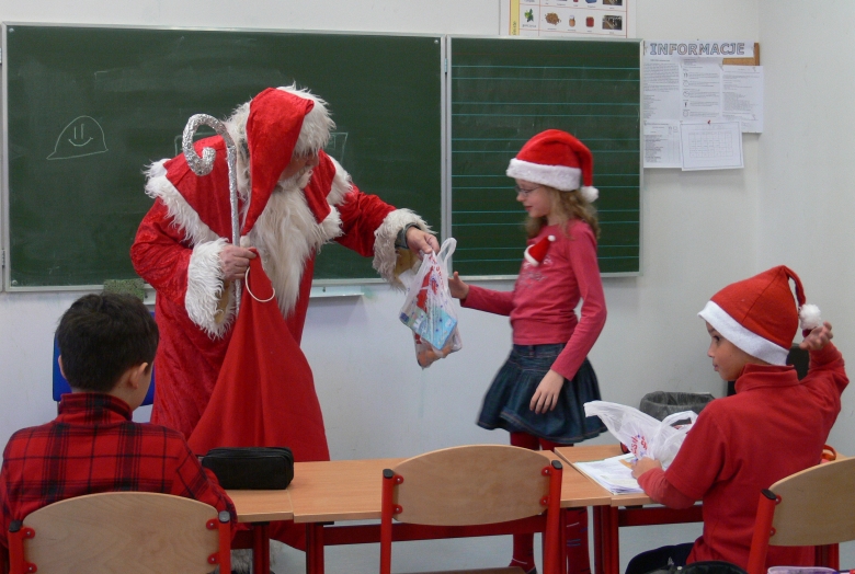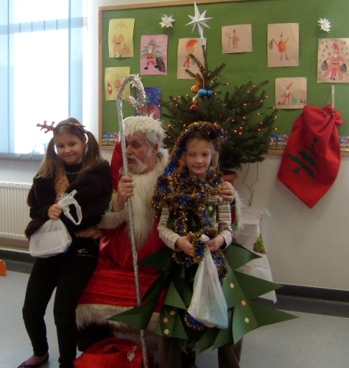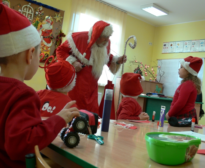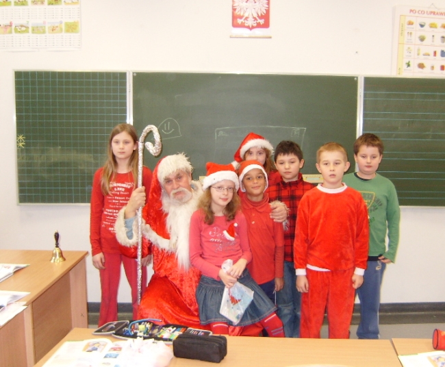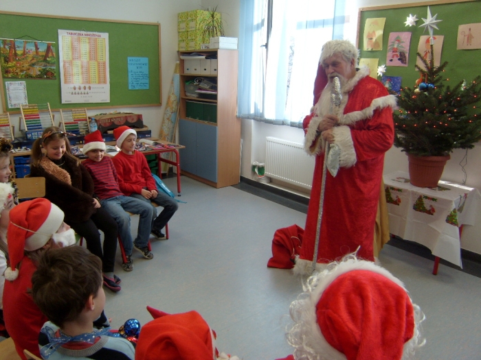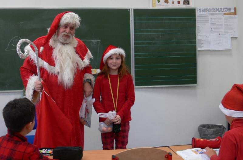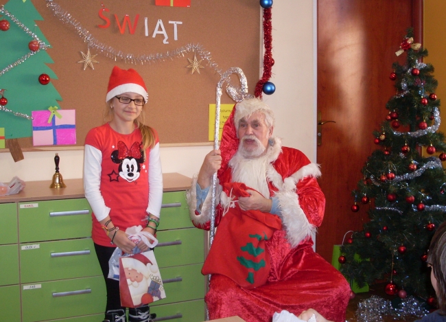 Mikołaj wysłuchał piosenek w wykonaniu uczniów. Każdy uczeń obdarowany został prezentem. Spotkanie ze św. Mikołajem było bardzo miłe i przebiegło w radosnej atmosferze. Był to dla wszystkich bardzo wesoły dzień.