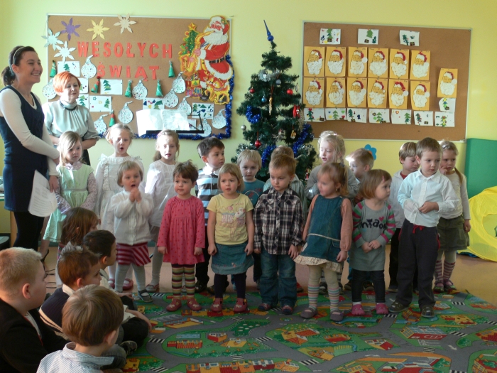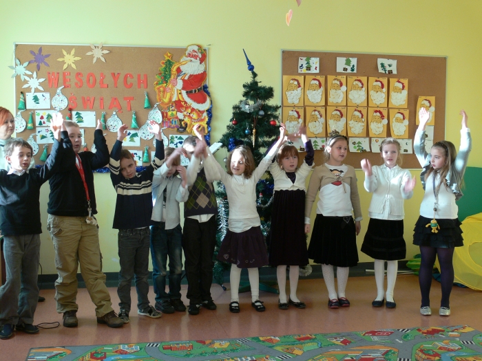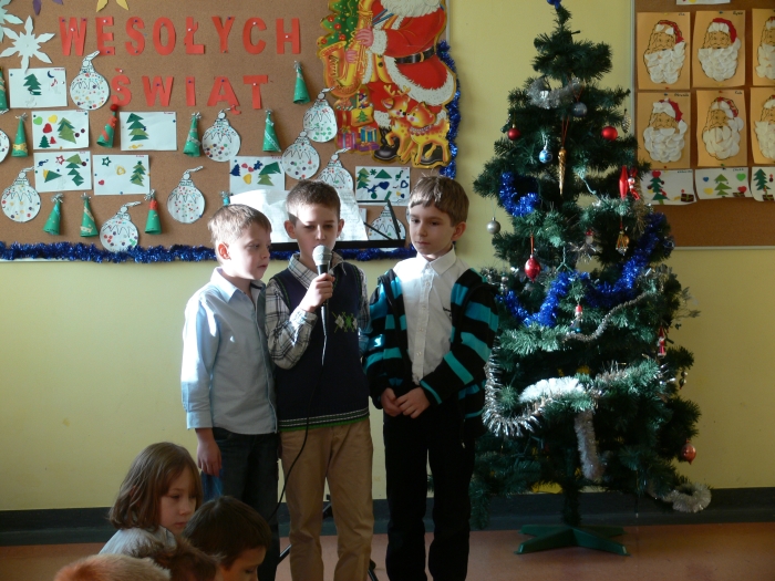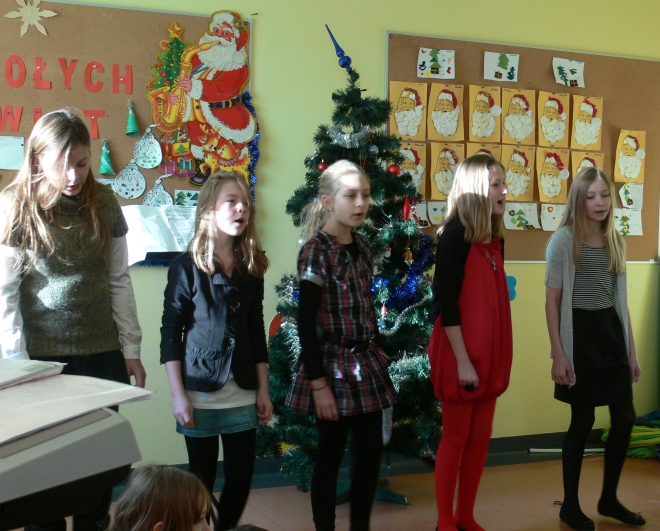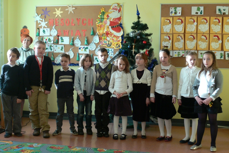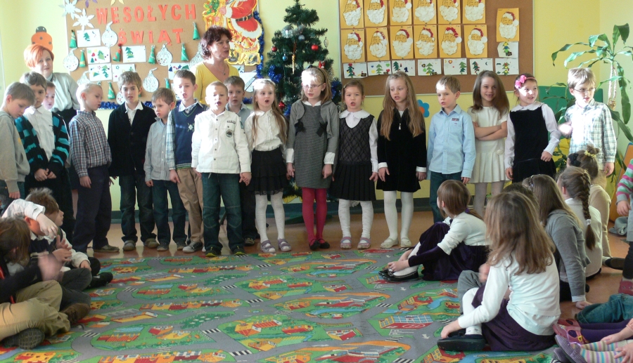Dzisiaj, 22 grudnia br. o godz. 10.00 spotkali się wszyscy uczniowie i przedszkolacy oraz nauczyciele na wspólnym kolędowaniu. Każda klasa zaprezentowała wybraną kolędę lub pastorałkę.