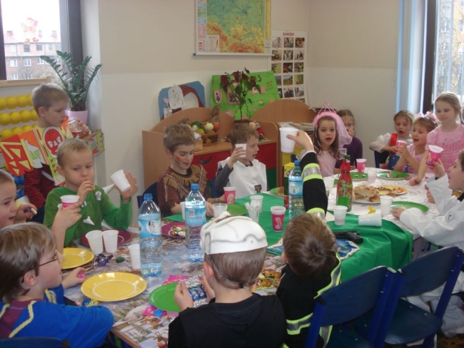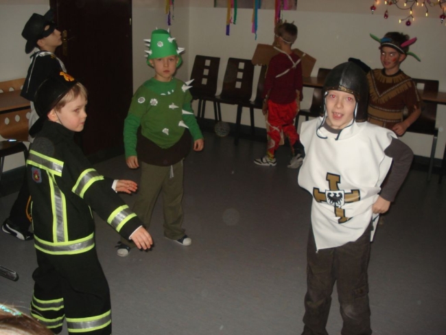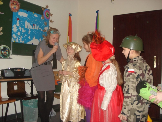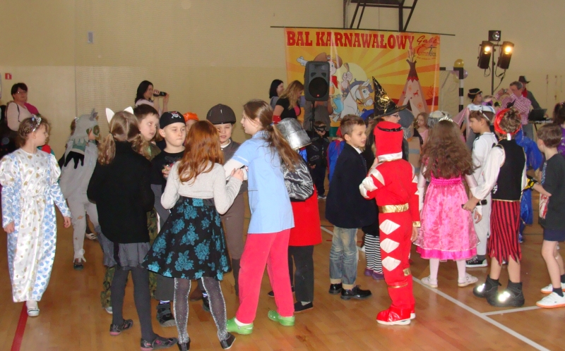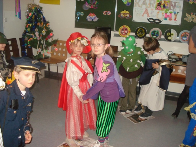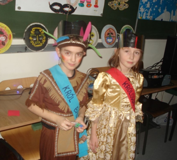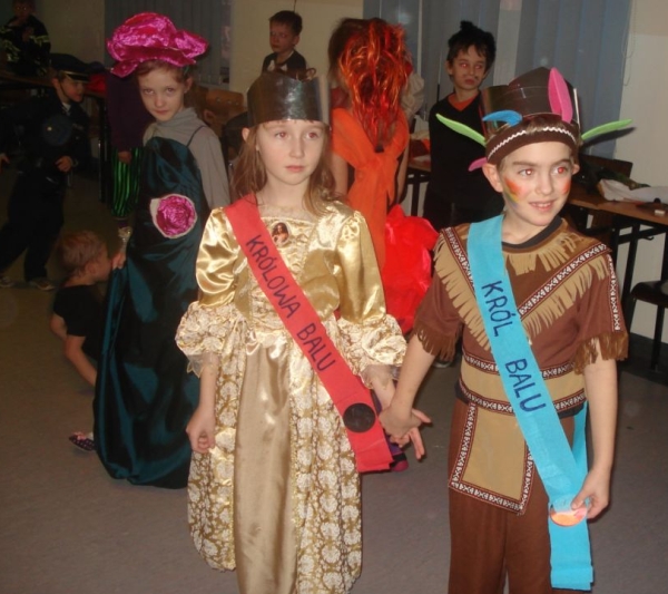 24 stycznia 2012 r. sala gimnastyczna zmieniła swoje oblicze i czekała na uczestników zabawy karnawałowej. Uczniowie klas: I i II nie zawiedli - przybyli w przeróżnych ciekawych strojach, bawili się przy muzyce oraz brali udział w wesołych konkursach. Wszyscy wykazali się doskonałym poczuciem rytmu i humoru. Marysia z kl. II i Milan z kl. I zostali wybrani na Królową i Króla Balu. W klasach czekał na dzieci słodki poczęstunek.