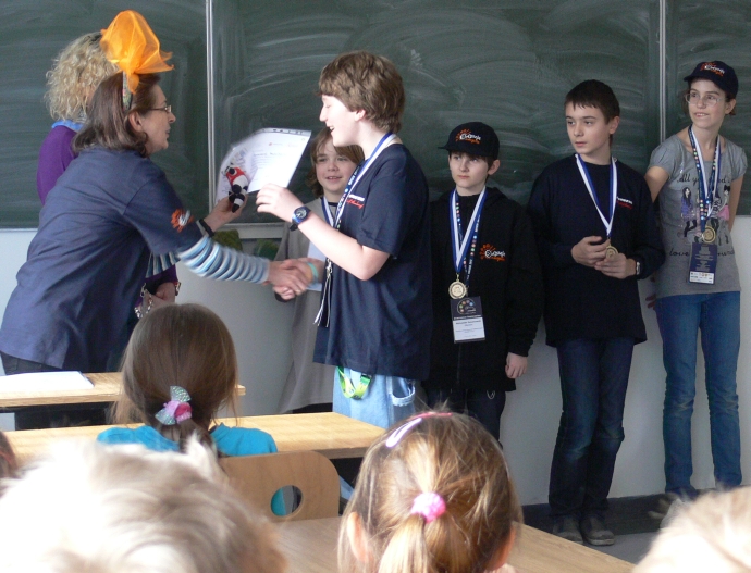Pozostali członkowie drużyny Olek J., Kamil, Ola i Michał też się bardzo starali i oprócz listu gratulacyjnego oraz medali otrzymali odznakę tegorocznej Odysei Umysłu'2012.
